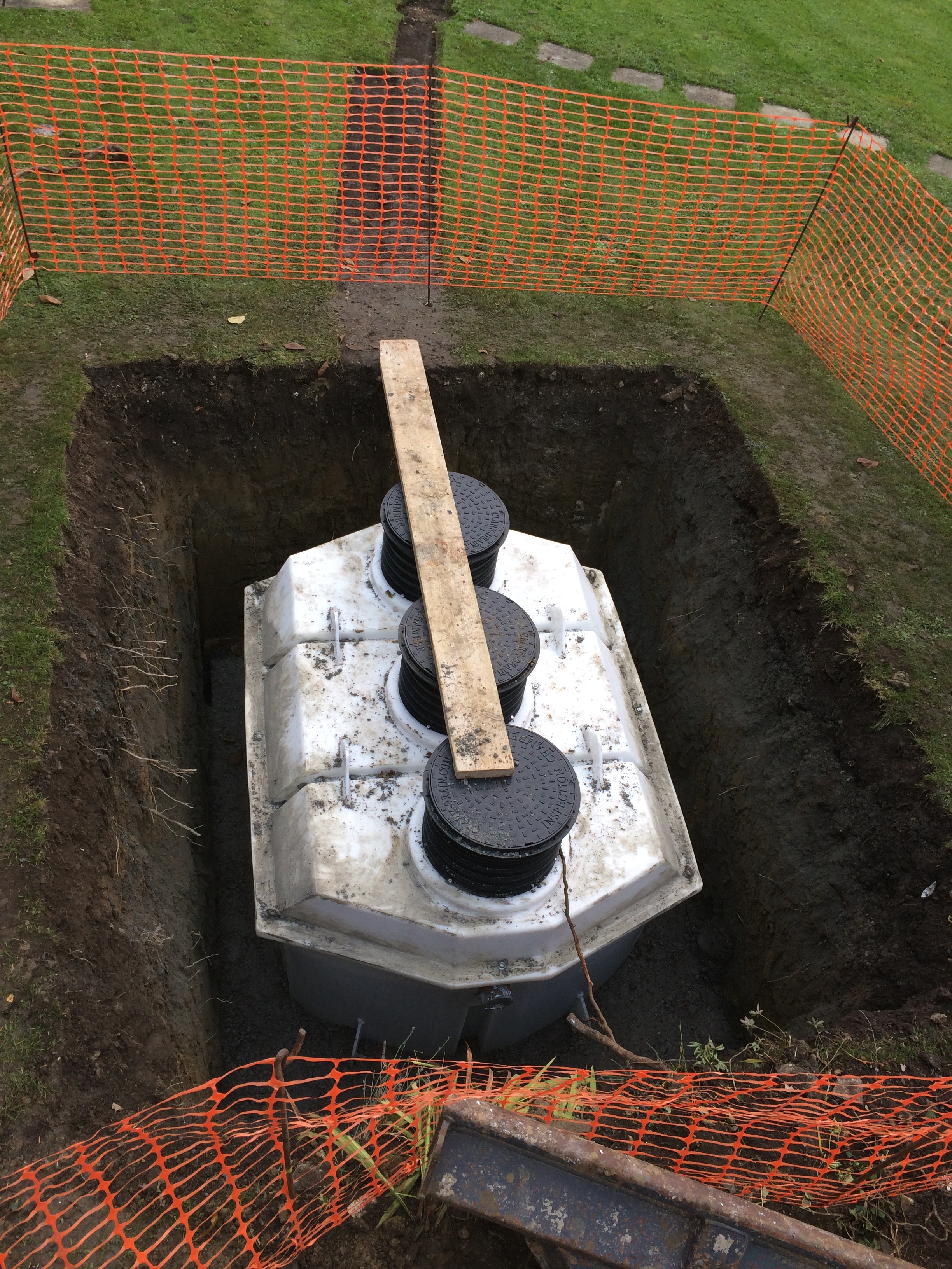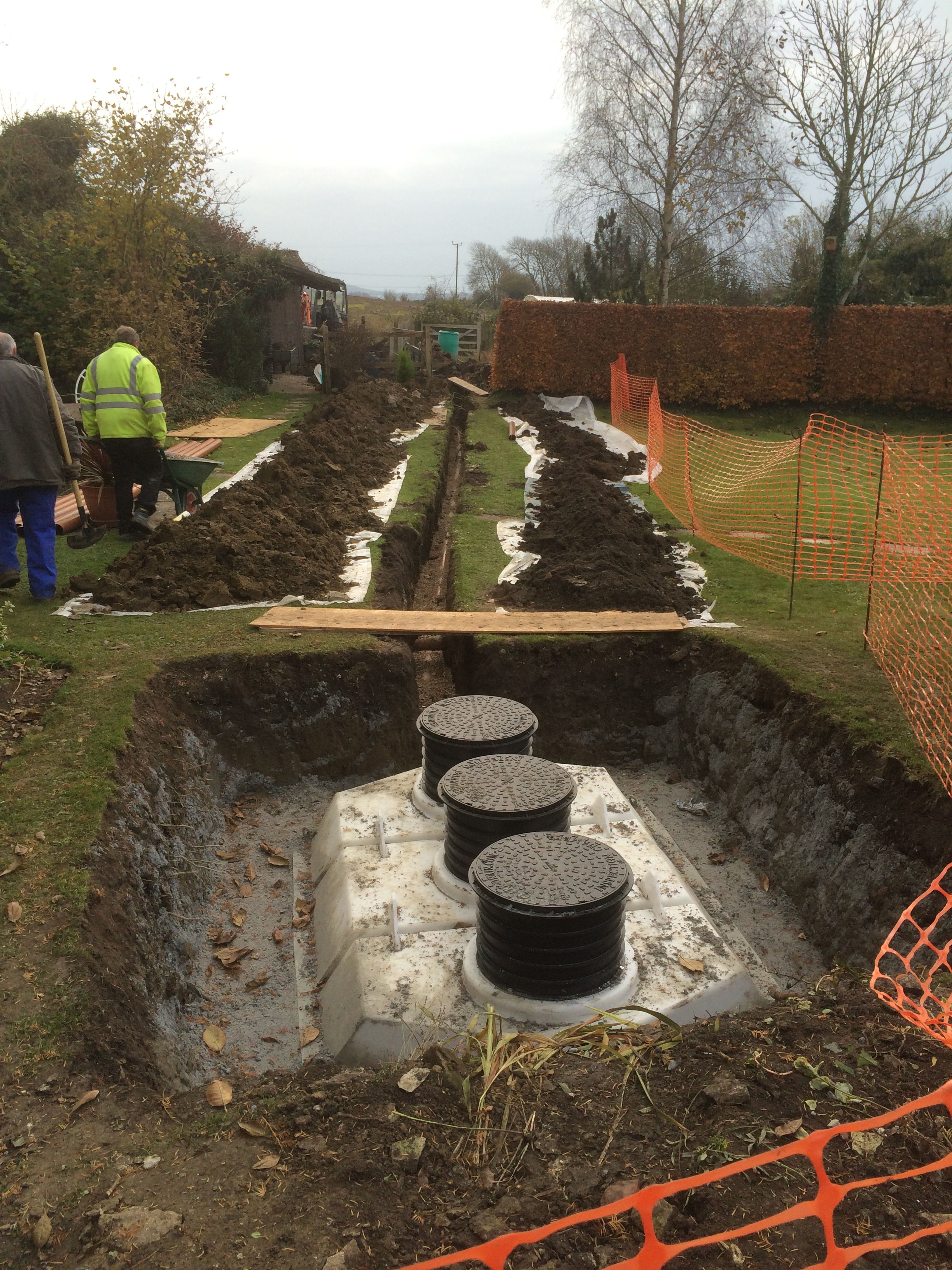Above; fitting of a foul water treatment plant, installed by us at Coryates Nr. Portesham.