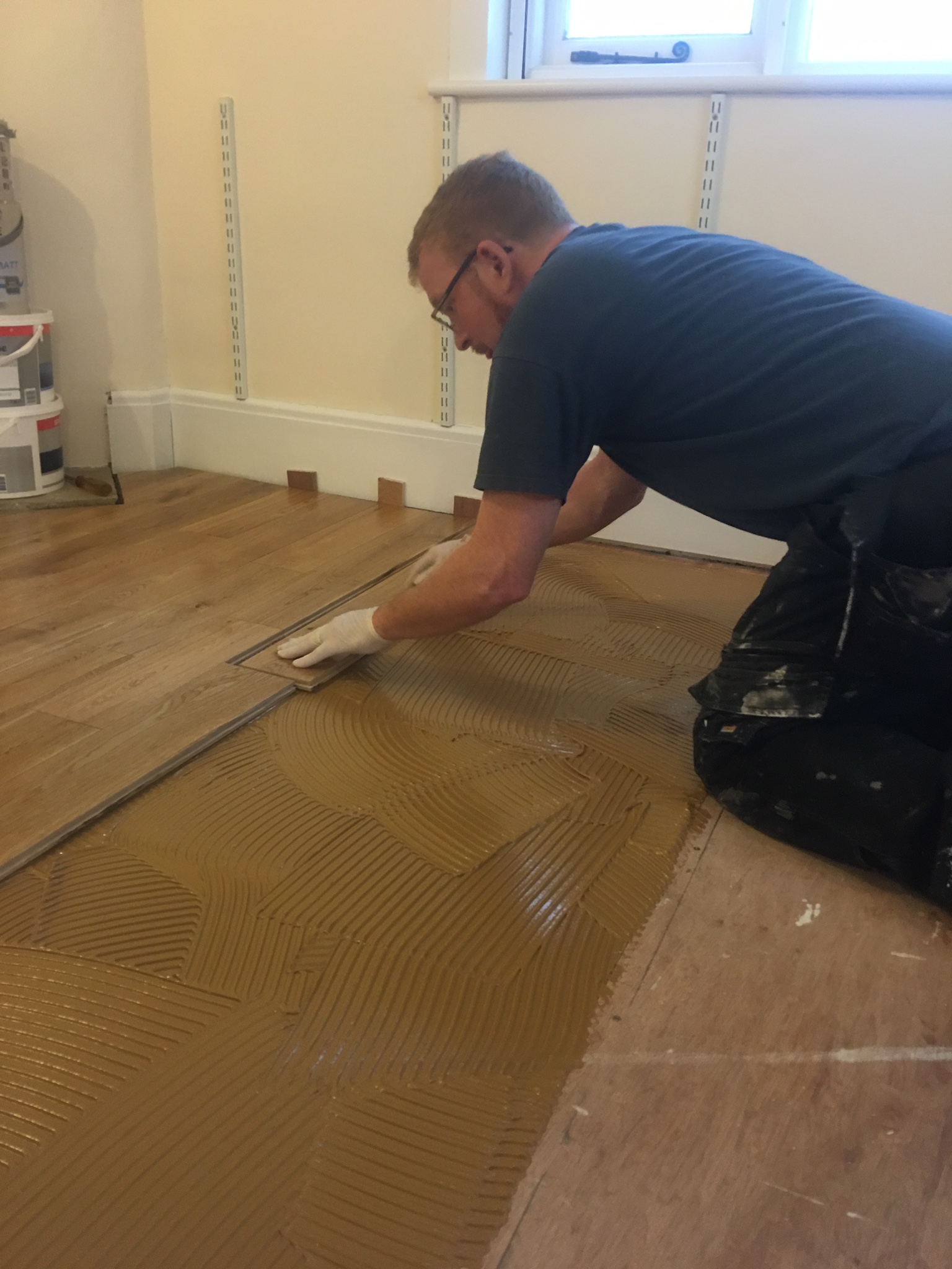 Above; Fitting of solid oak flooring, hard wearing and very durable, with that added touch of luxury.